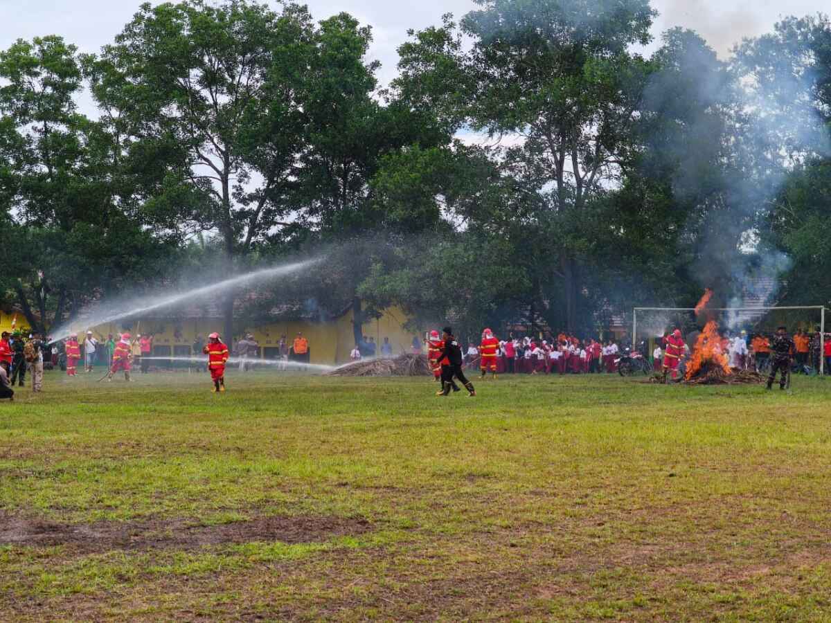Rangkaian kegiatan meliputi apel siaga, pengecekan personel dan peralatan pemadam karhutla, serta simulasi penanganan kebakaran hutan dan lahan.