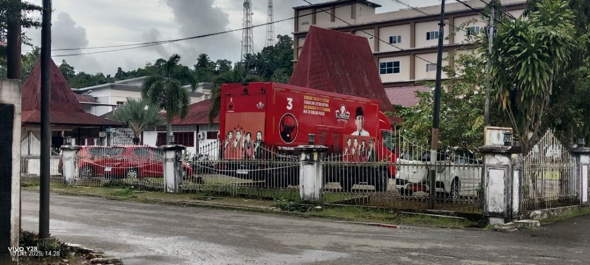 Gunungsitoli,KabarOneNews.com-Mobil Truk berlambangkan salah satu lambang partai politik Berwarna merah, Terparkir (10/10) di rumah dinas Bupati Nias sekaligus pendopo yang berada di wilayah Kecamatan Gunungsitoli kota Gunungsitoli provinsi Sumatera Utara. Sabtu 11/10/2025