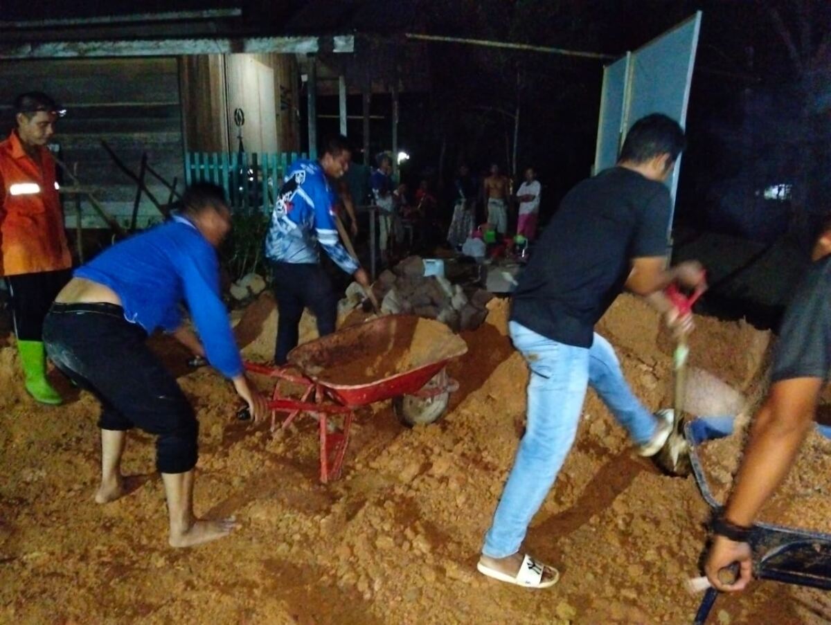 Gotong royong yang dimulai pagi difokuskan pada pengerjaan teras, lantai, dinding, dan perbaikan atap mushola. Menyadari terbatasnya waktu dan target penyelesaian sebelum akhir bulan, para prajurit TMMD dan warga Desa bekerja tanpa henti, bahkan memanfaatkan waktu malam dengan penerangan tambahan untuk memastikan pekerjaan berjalan lancar.