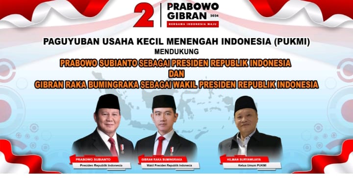 Jakarta, Kabar One news.com- Paguyuban Usaha Kecil Menengah Indonesia (PUKMI), salah satu elemen pendukung Prabowo – Gibran pada laga Pilpres 2024 lalu terus berkomitmen untuk mendukung program Presiden Prabowo Subianto.