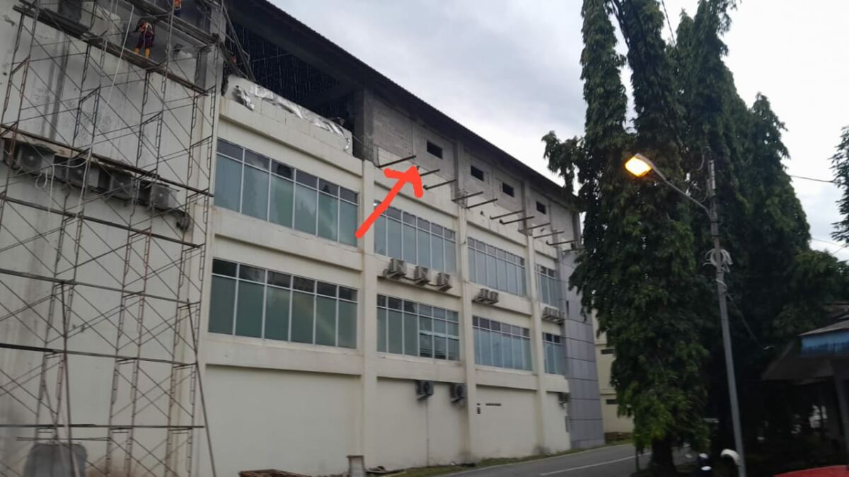 Tetapi ada yang janggal dari tahapan pelaksanaan pada proyek ini. Sebelum dibangun dengan tambahan bangunan baru, dilantai empat terdapat dinding beton dari bata merah yang mengelilingi bagian luar pada lantai tersebut.