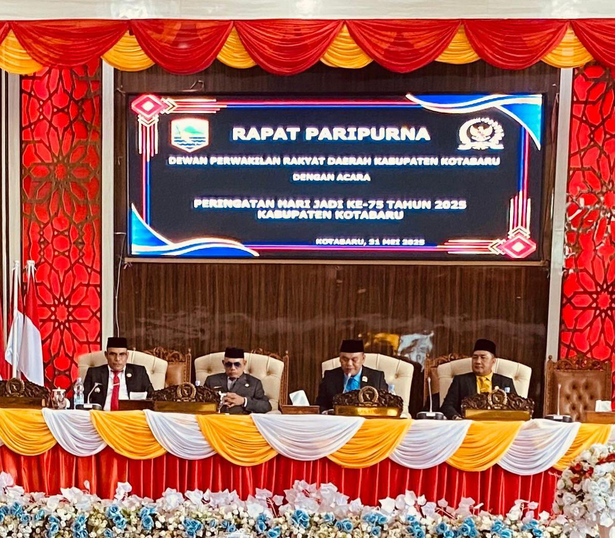 Kotabaru,KabarOnenrws.com+ Suasana penuh khidmat dan semangat kebersamaan mewarnai Rapat Paripurna Istimewa DPRD Kabupaten Kotabaru dalam rangka memperingati Hari Jadi ke-75 Kabupaten Kotabaru, Sabtu (31/5/2025).