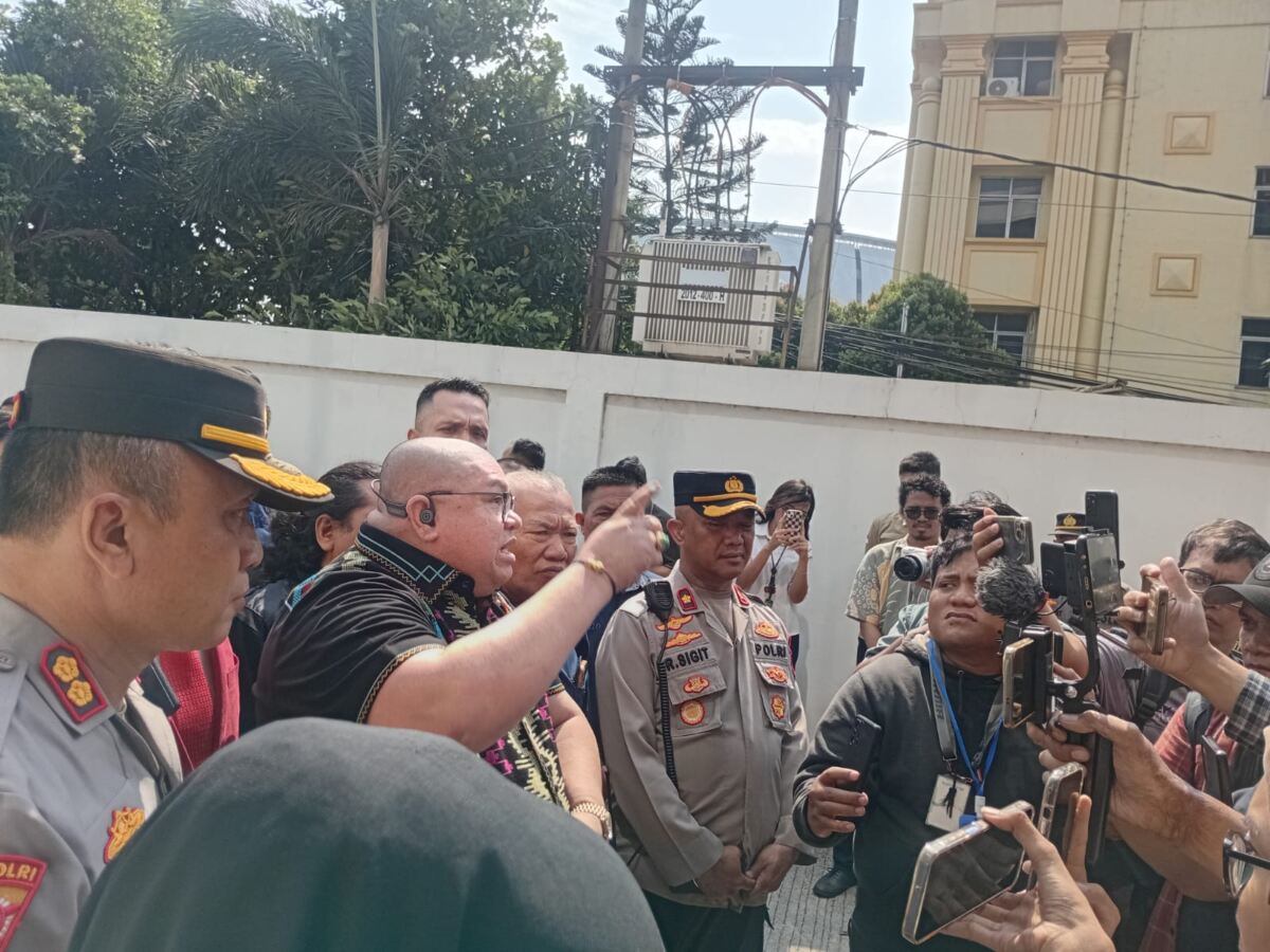 Jakarta, Kabaronenews.com,-Sebelum pembacaan putusan perkara UU ITE, terdakwa Rasman Arief Nasution, melakukan orasi membawa massa di Pengadilan Negeri Jakarta Utara, Selasa 2/9/2025.