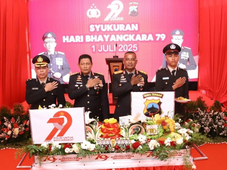 SEMARANG,kabaronenews.com – Polda Jateng menggelar tasyakuran dalam rangka memperingati Hari Bhayangkara ke-79 pada Selasa, (1/7/2025) siang di lobi Mapolda Jateng. Acara ini menjadi penutup dari rangkaian kegiatan puncak Hari Bhayangkara yang sebelumnya diawali dengan upacara peringatan di lapangan Mapolda.