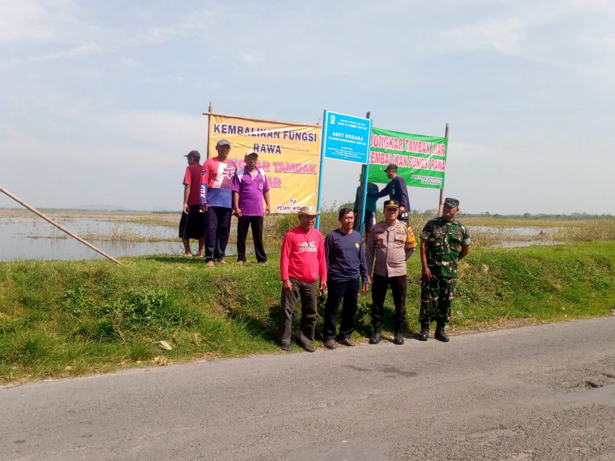 Lamongan, KabarOne News.com-Pasca Warga petani rapat bersama Perwakilan Dinas PU Sumber Daya air provinsi Jatim di lanjutkan mereka melakukan pemasangan banner sosialisasi di bantaran Waduk Sekaran di sepanjang jalan karang- Kembangan Kecamatan Sekaran Minggu,(07/09/2025).