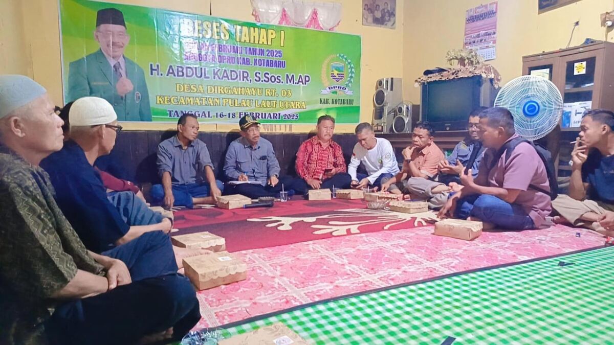 Kotabaru,Kabaronenews.com- Anggota DPRD Kotabaru dari Partai Persatuan Pembangunan (PPP), H. Abdul Kadir, S.Sos, M.AP, kembali melaksanakan kegiatan Reses Tahap I di Desa Dirgahayu, RT 03, Kecamatan Pulau Laut Utara, pada Senin (17/02/2025).